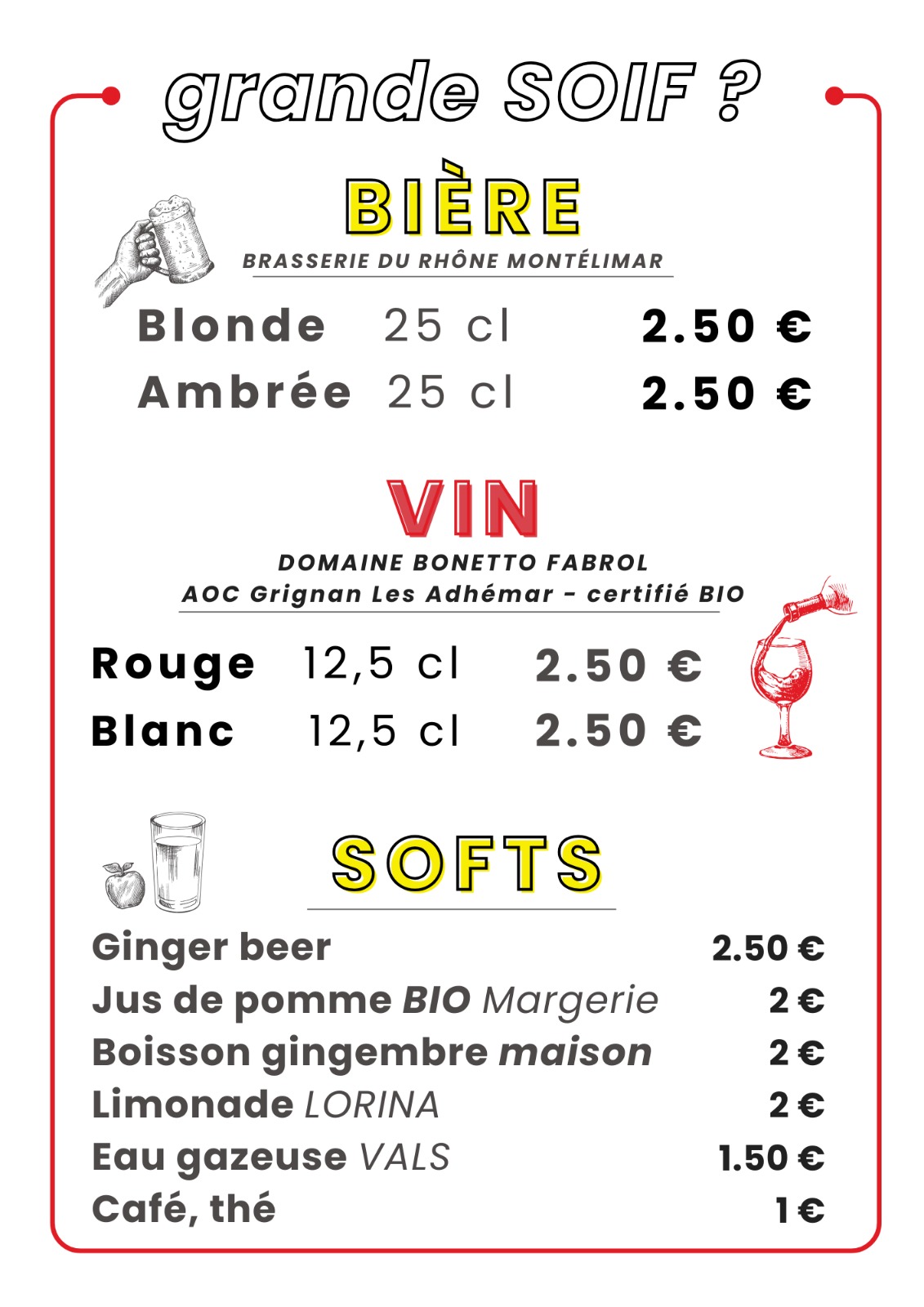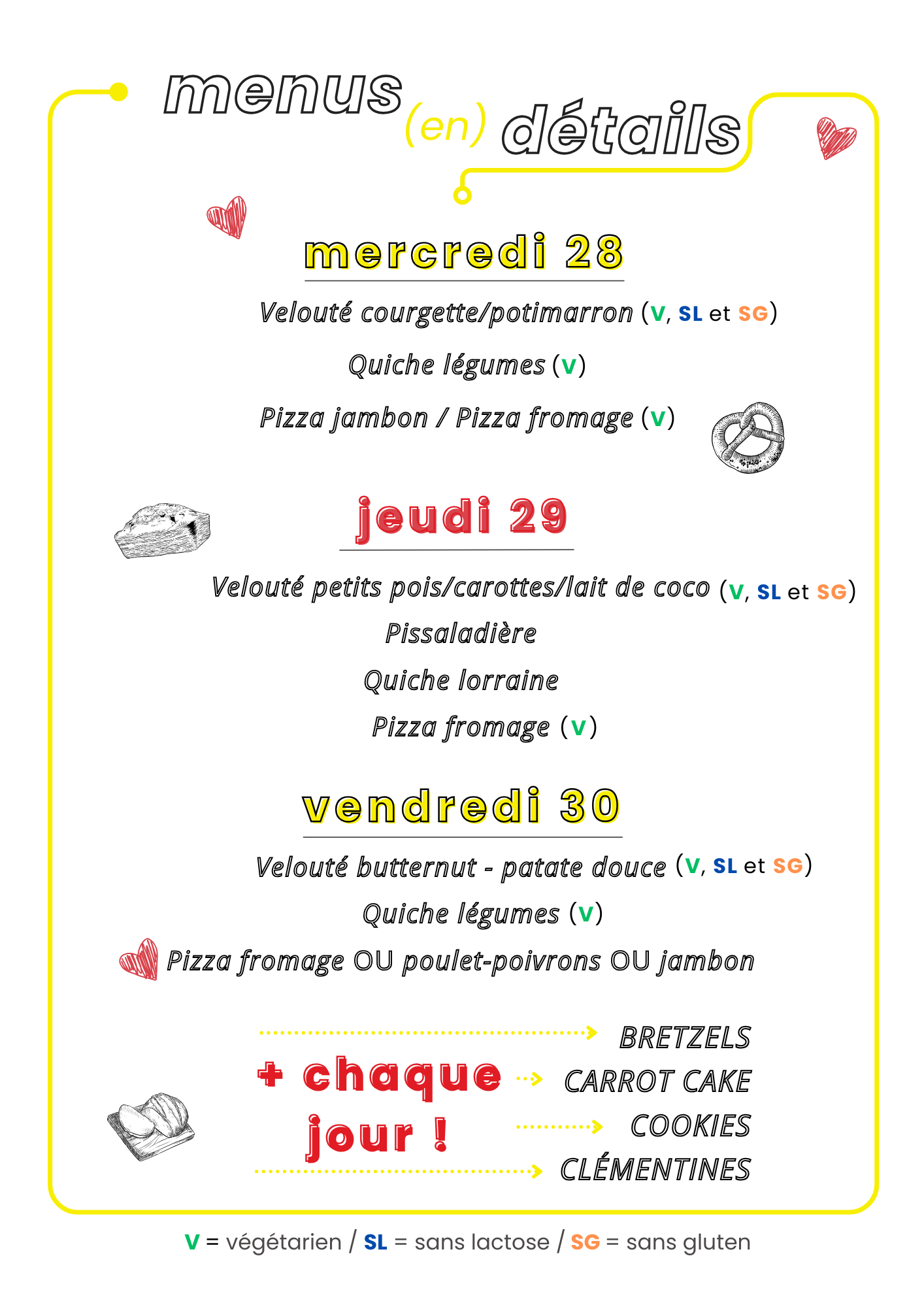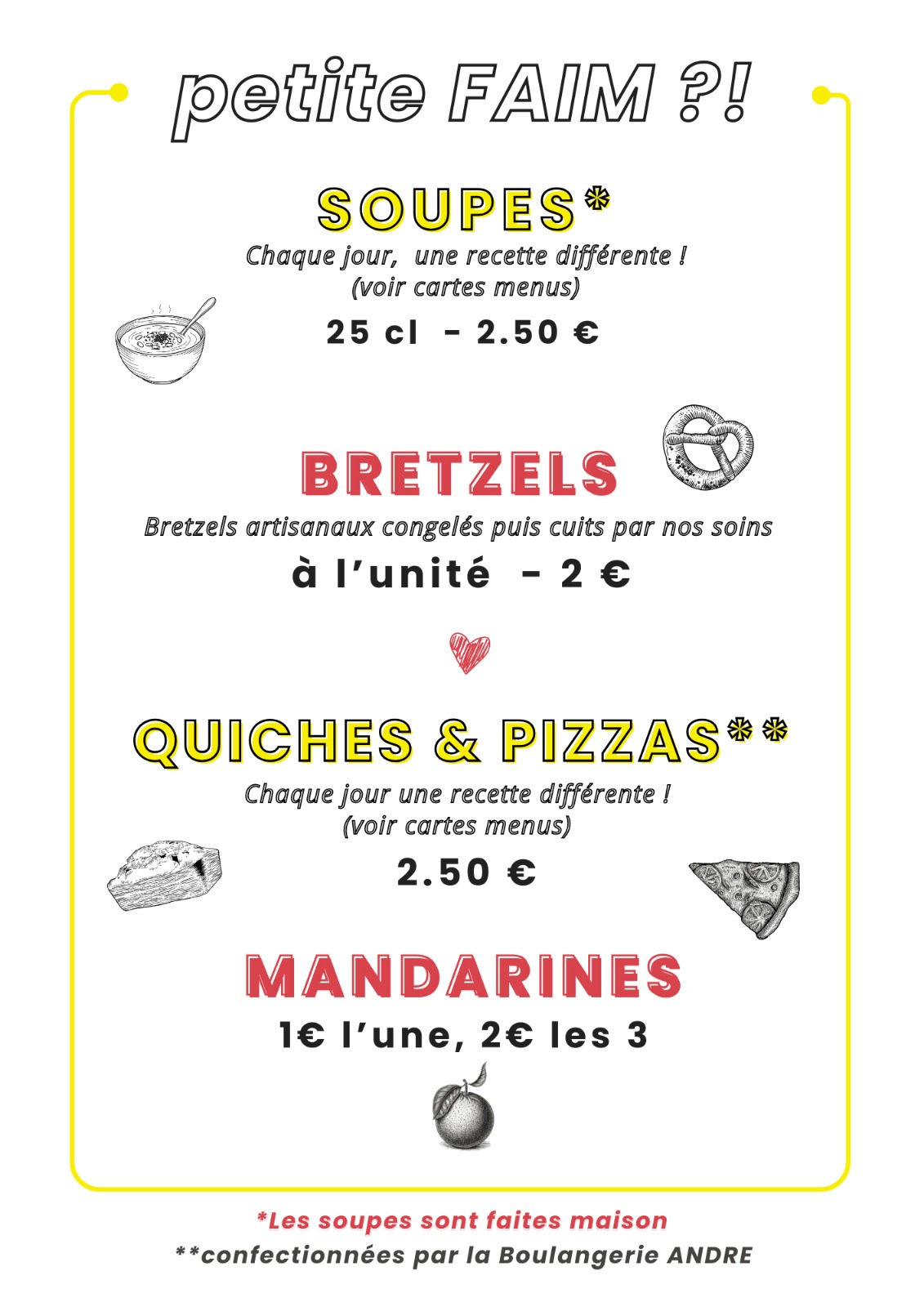 Voici le menu. Bon appétit !